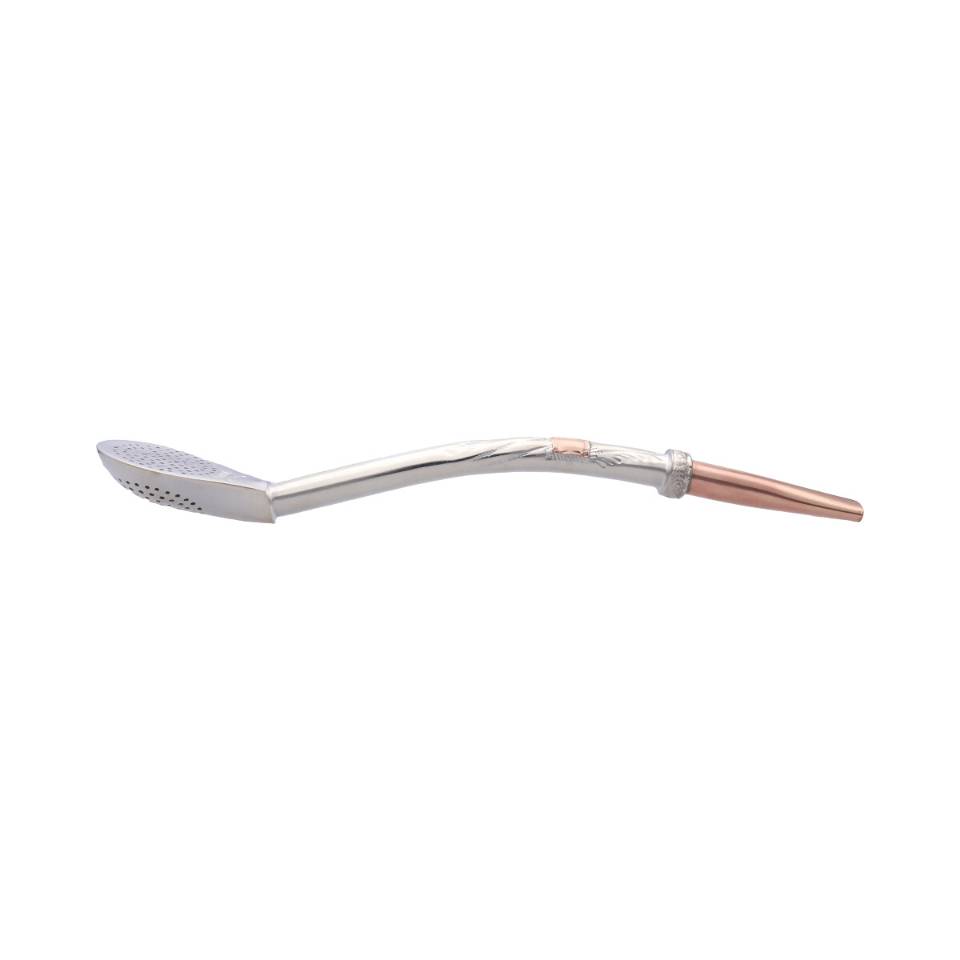 Bombilla Plata con boca en oro y tarjeta en oro.