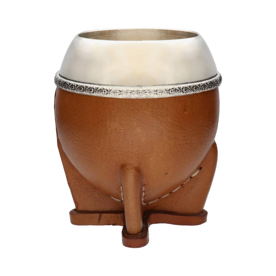 Mate en plata forrado en cuero .